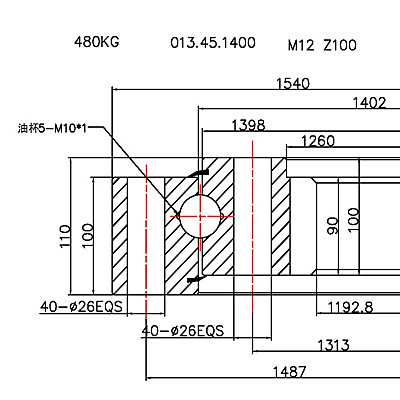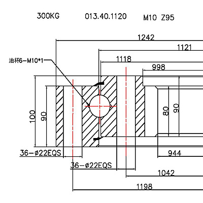 回轉支承選擇:實際使用承載力點 必須在承載能力曲線以下方可使用.